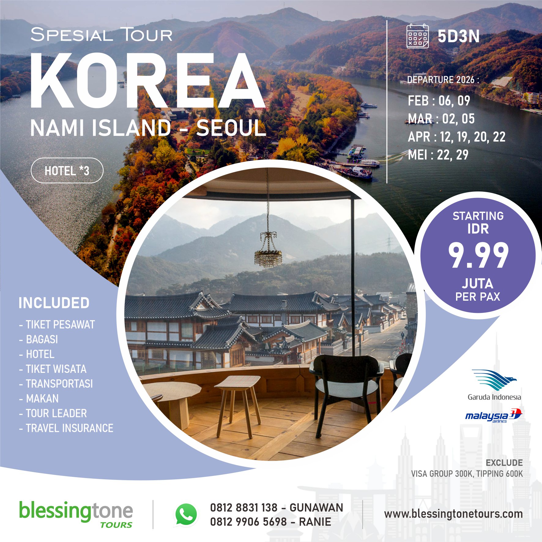 Spesial Tour Korea Nami Island Seoul - 5D3N