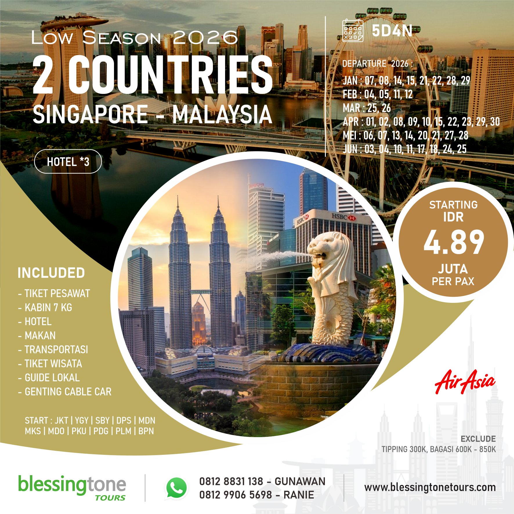 Low Season - Paket Tour 2 Negara Singapore Malaysia