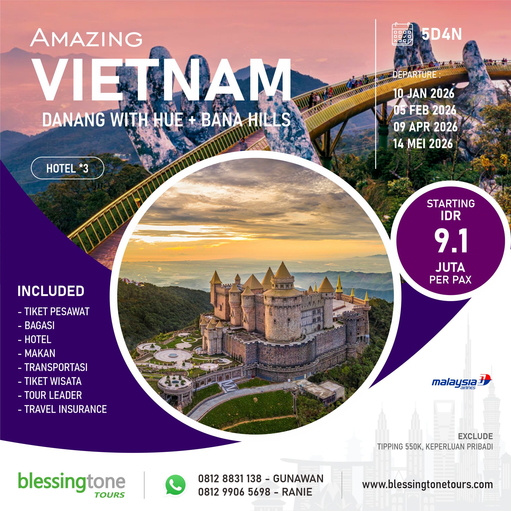 Tour Amazing Vietnam Danang With Hue + Ba Na Hills