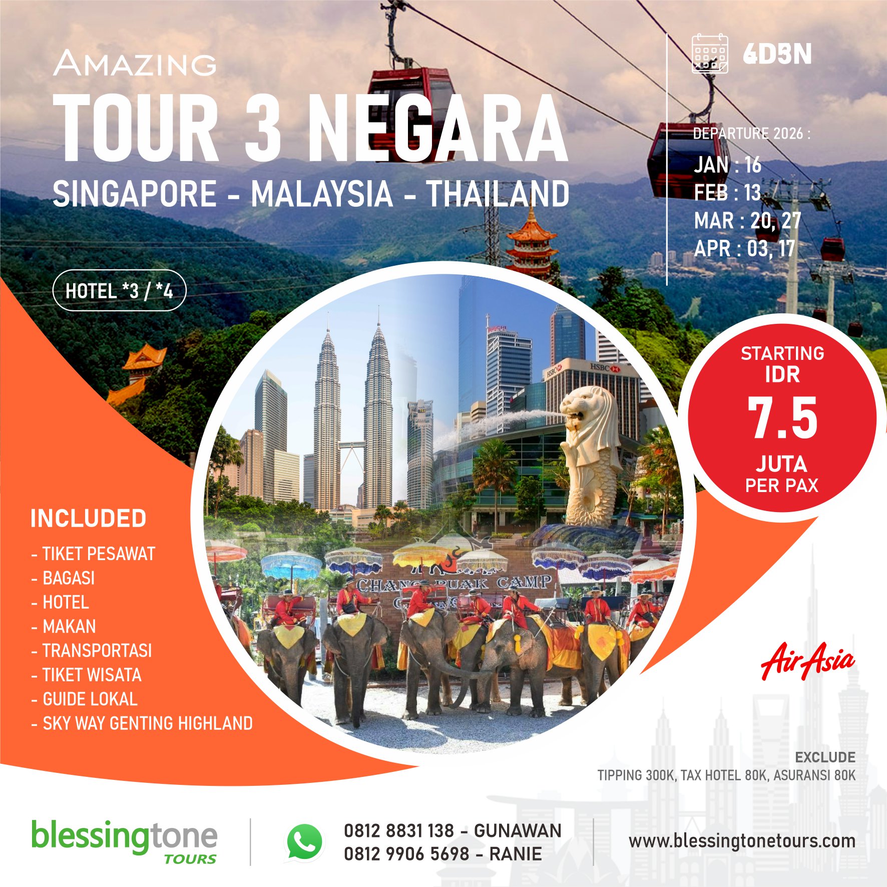 Amazing Tour 3 Negara Singapore Malaysia Thailand