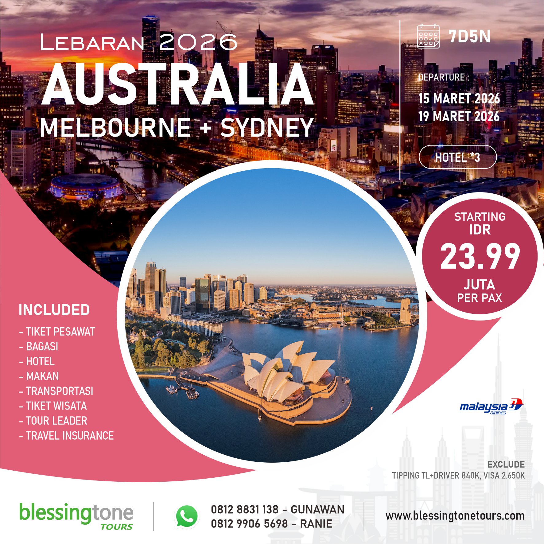 Lebaran 2026 - Tour Australia Melbourne + Sydeny - 7D5N