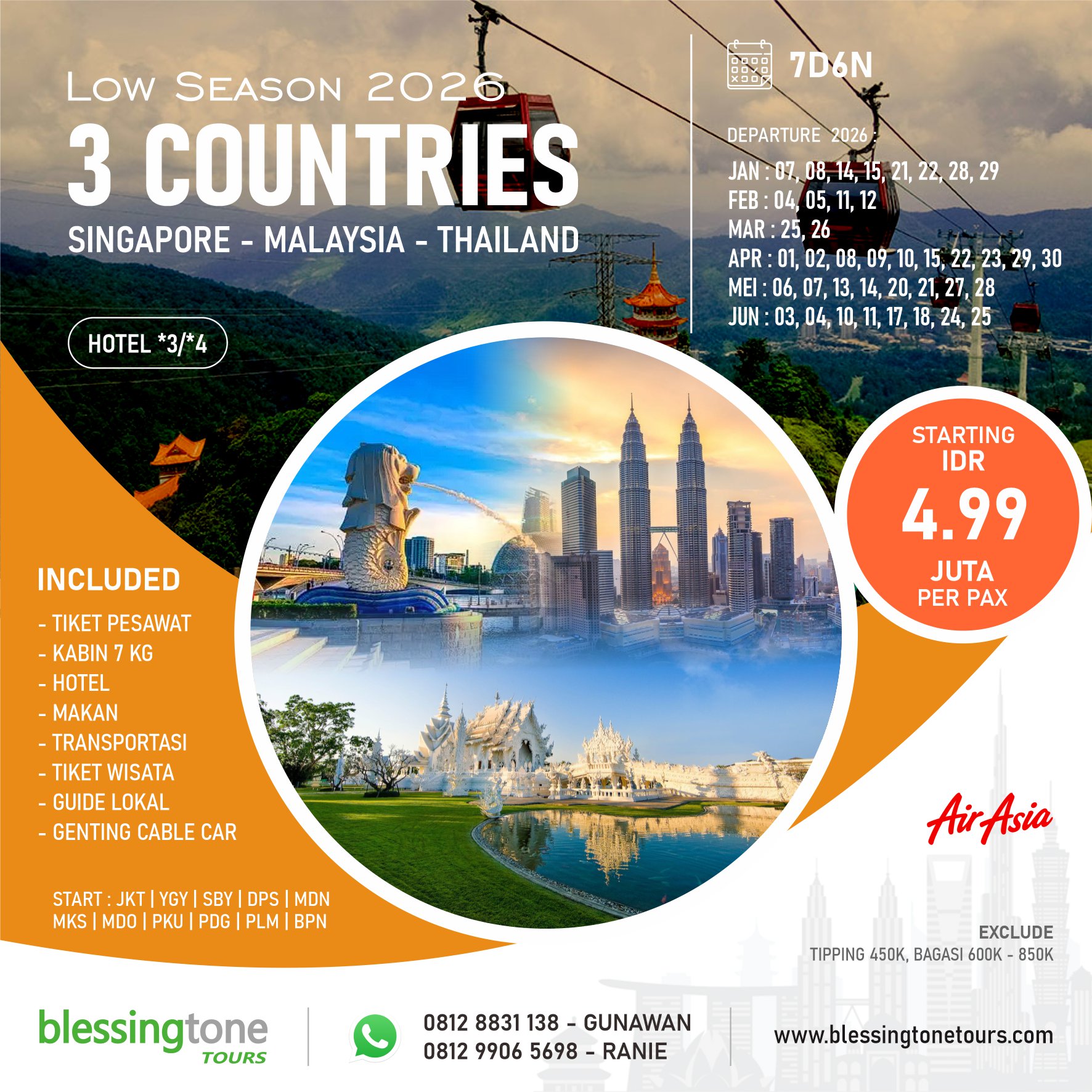 Low Season 2026 - Tour 3 Negara Singapore Malaysia Thailand